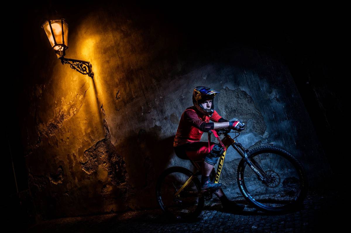 Dan Vojtěch: Cyklista Tomáš Slavík, který se specializuje především na fourcross, v uličkách staré Prahy.