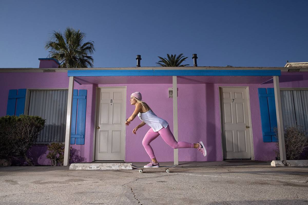 Atiba Jefferson: Profesionální brazilská skateboardistka Leticia Bufoniová u Pink Motelu v Los Angeles.