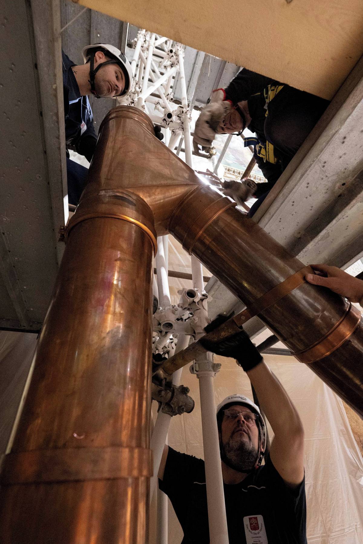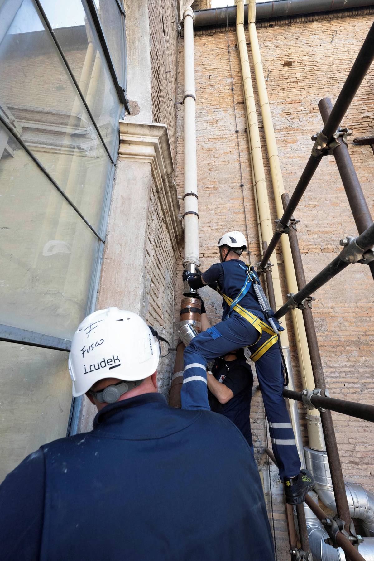 Instalace kouřovodu v Sixtinské kapli.