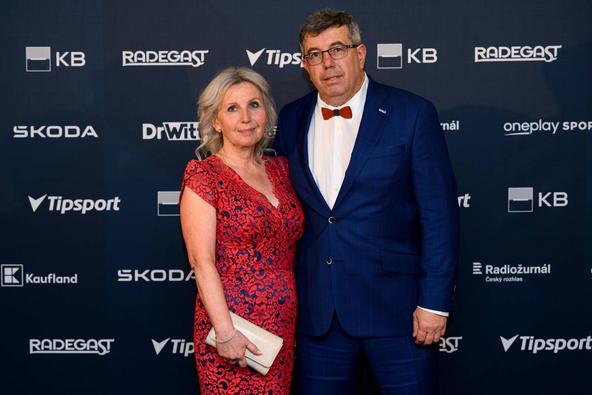 Trenér Komety Brno Kamil Pokorný s manželkou během slavnostního vyhlášení Hokejista sezony 2025, dne 5. května 2025 v Praze.
