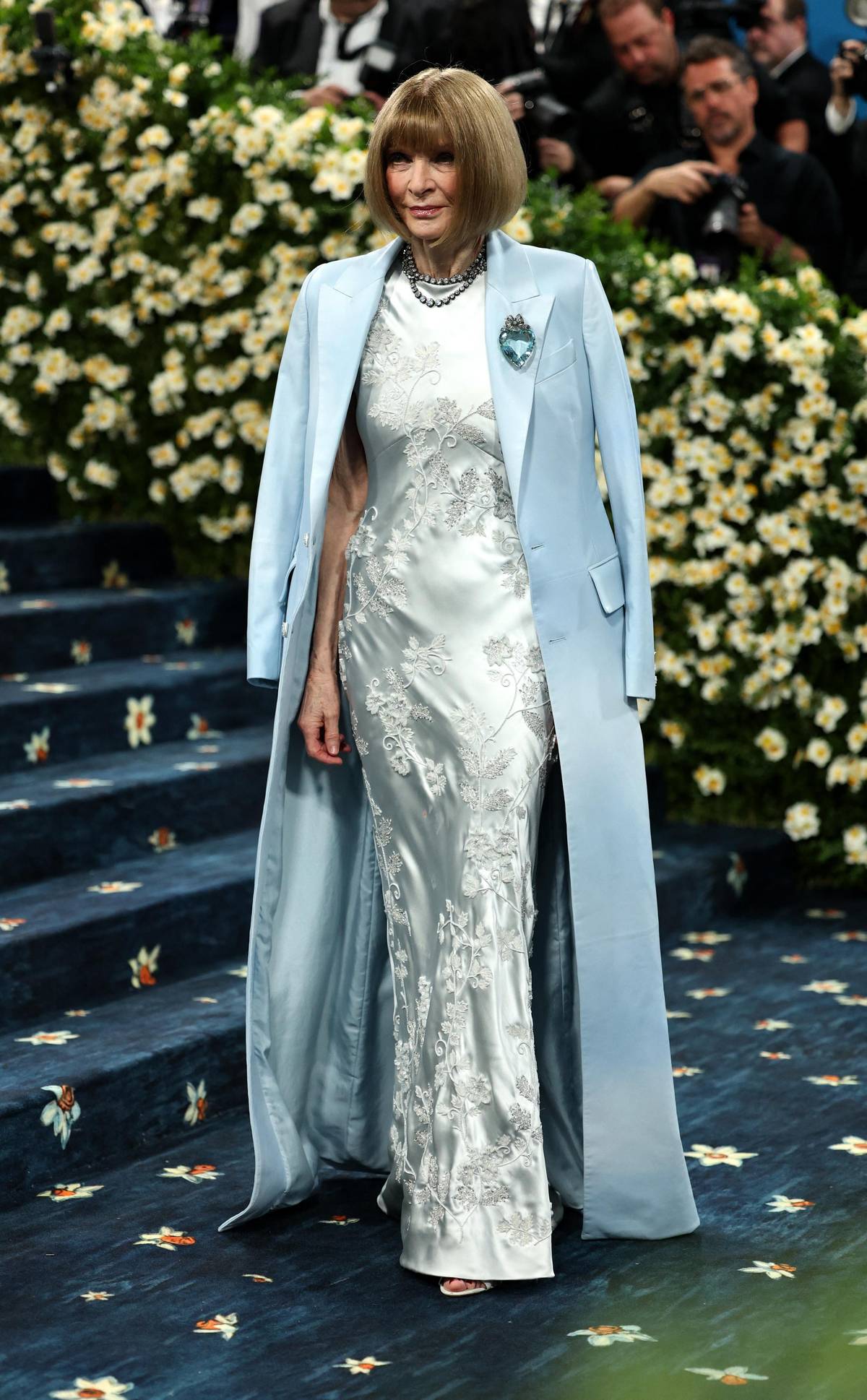 Šéfredaktorka Vogue Anna Wintourová celou akci pořádá. Oblékla se kompletně do značky Louis Vuitton a výjimečně odložila také své ikonické černé brýle.