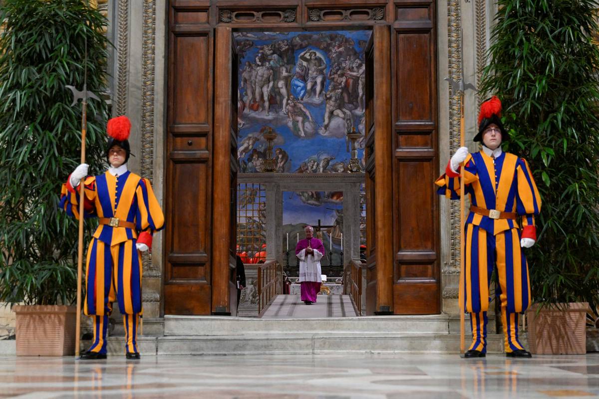 Vchod do Sixtinské kaple střeží Švýcarská garda.