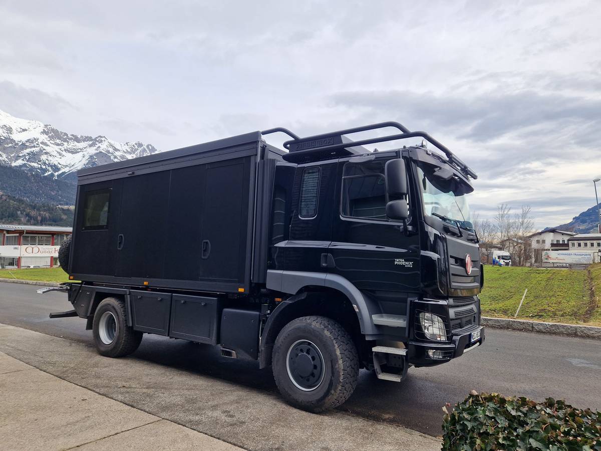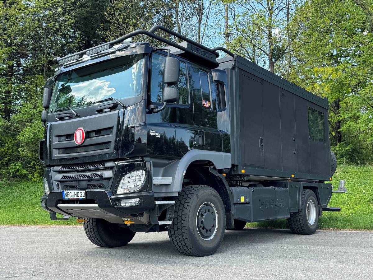 Obytná Tatra Phoenix, která nás dostala nejen temně černou barvou: Je plná přírodních materiálů a spát můžete dokonce na střeše