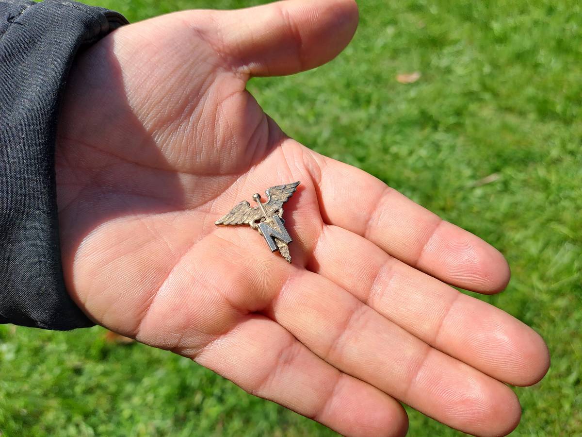 Odznak, který nosily americké zdravotní sestry. Podle vedoucího výzkumu Pavla Vařeky jde o nejcennější nález.