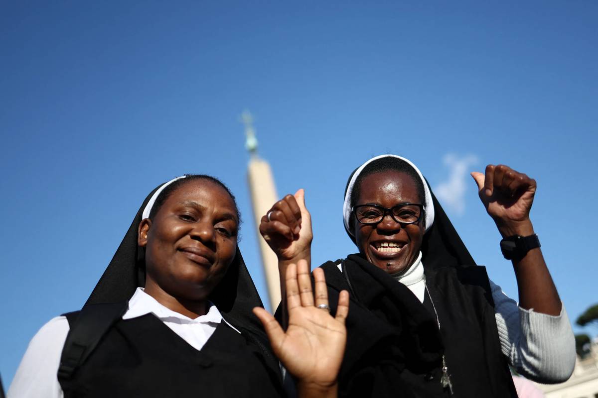 Jeptišky reagují na bílý kouř nad Sixtinskou kaplí