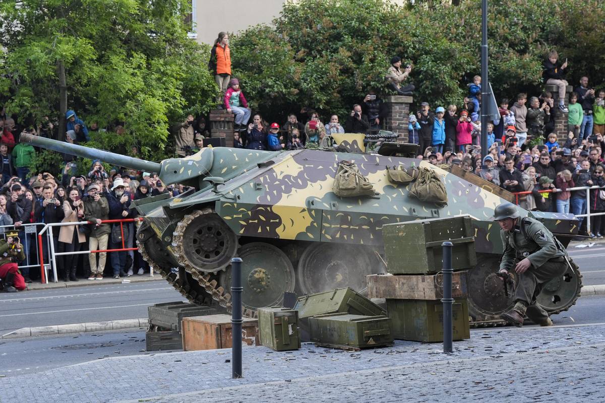 Pražské povstání začalo 5. května 1945. Povstalcům se podařilo přimět Němce ke kapitulaci, zabránit mnohonásobně většímu krveprolití a vyprovokovat i rychlejší zásah Rudé armády. Na snímku přijíždějící tank Rudé armády.