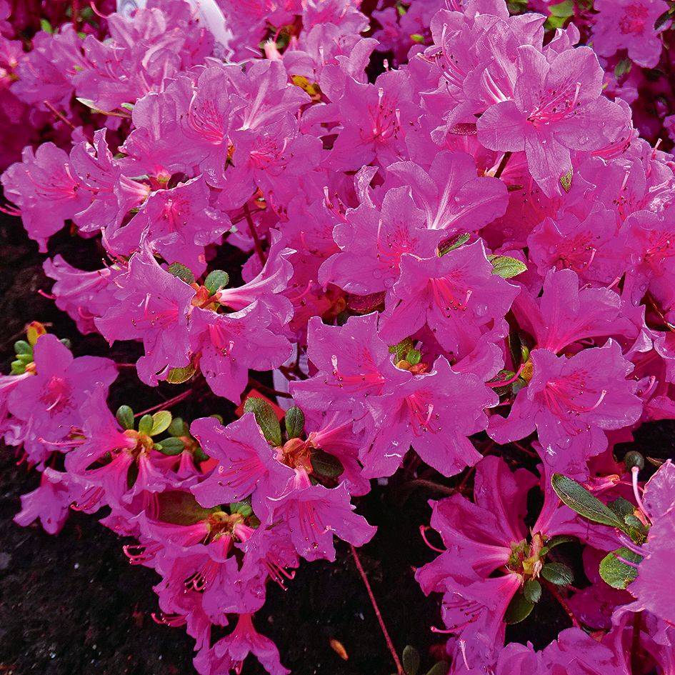 Různé barvy azalek se mezi sebou velmi dobře kombinují, v popředí ‚Orange Beauty‘.