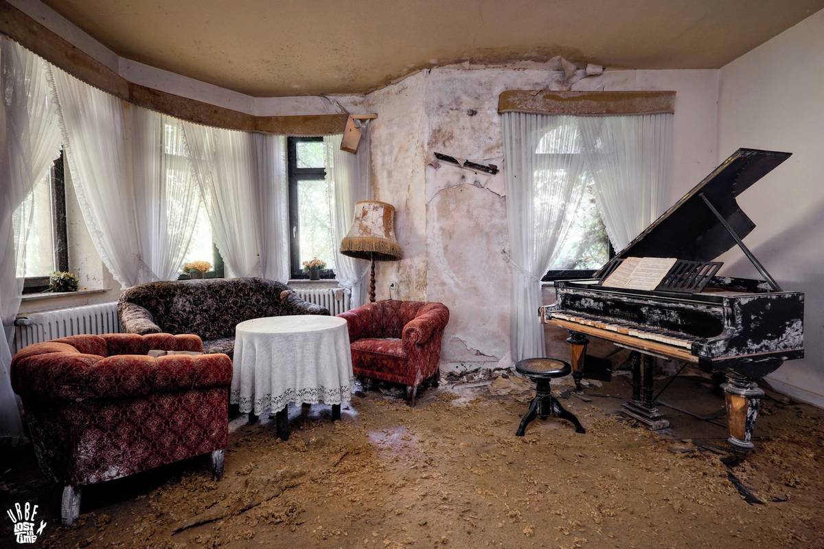 Uvnitř stavby panuje ledový chlad, který kontrastuje s venkovním teplem. Přízemí překvapuje zachovalostí – obývací pokoj s pianem působí téměř idylicky a kuchyně budí dojem, že prošla nedávnou rekonstrukcí. Iluzi však naruší mohutný výskyt dřevomorky v rohu místnosti, který okamžitě připomene známé tragické případy z jiných opuštěných budov. Patro už takovou noblesu nenabízí – zdi praskají, kusy omítky padají na podlahu a větrem pronikajícím skrz mezeru mezi stěnou a podlahou se nese zlověstné kvílení.