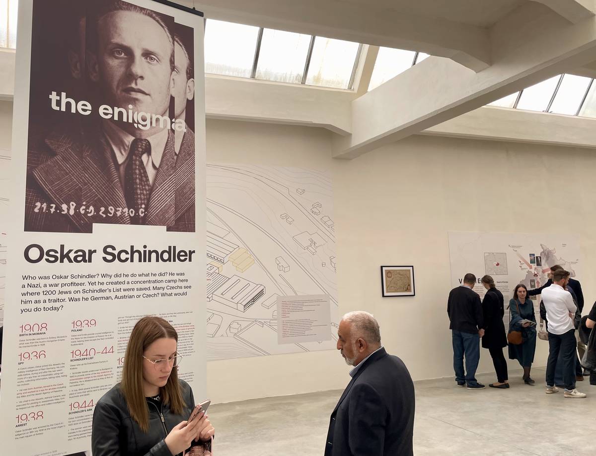 Tvůrci výstavy ukazují i různé pohledy na složitou osobnost nacisty Oskara Schindlera, který uchránil své dělníky od transportů smrti.