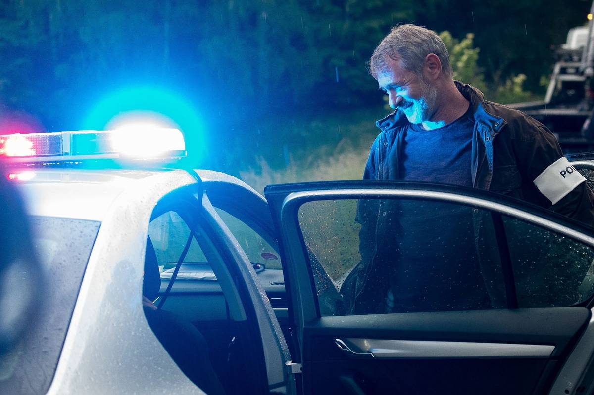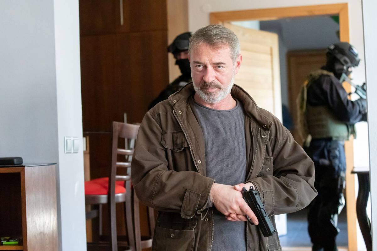 Nad mrtvolou klečí Jan Slovák a Jitka Čvančarová jako Karin, vpravo stojí Jiří Dvořák v roli Davida.