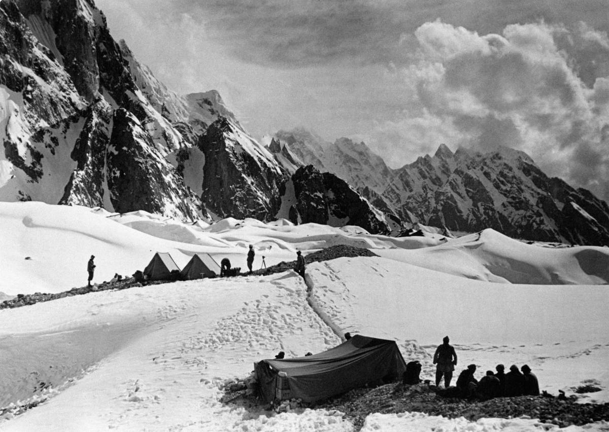 Smrt ostatně provázela i vůbec první úspěšnou výpravu na K2, kterou v létě 1954 uspořádali Italové. Mario Puchoz při budování postupných výškových táborů podlehl následkům pneumonie. (Na snímku vidíte tábor italské expedice na ledovci Concordia).