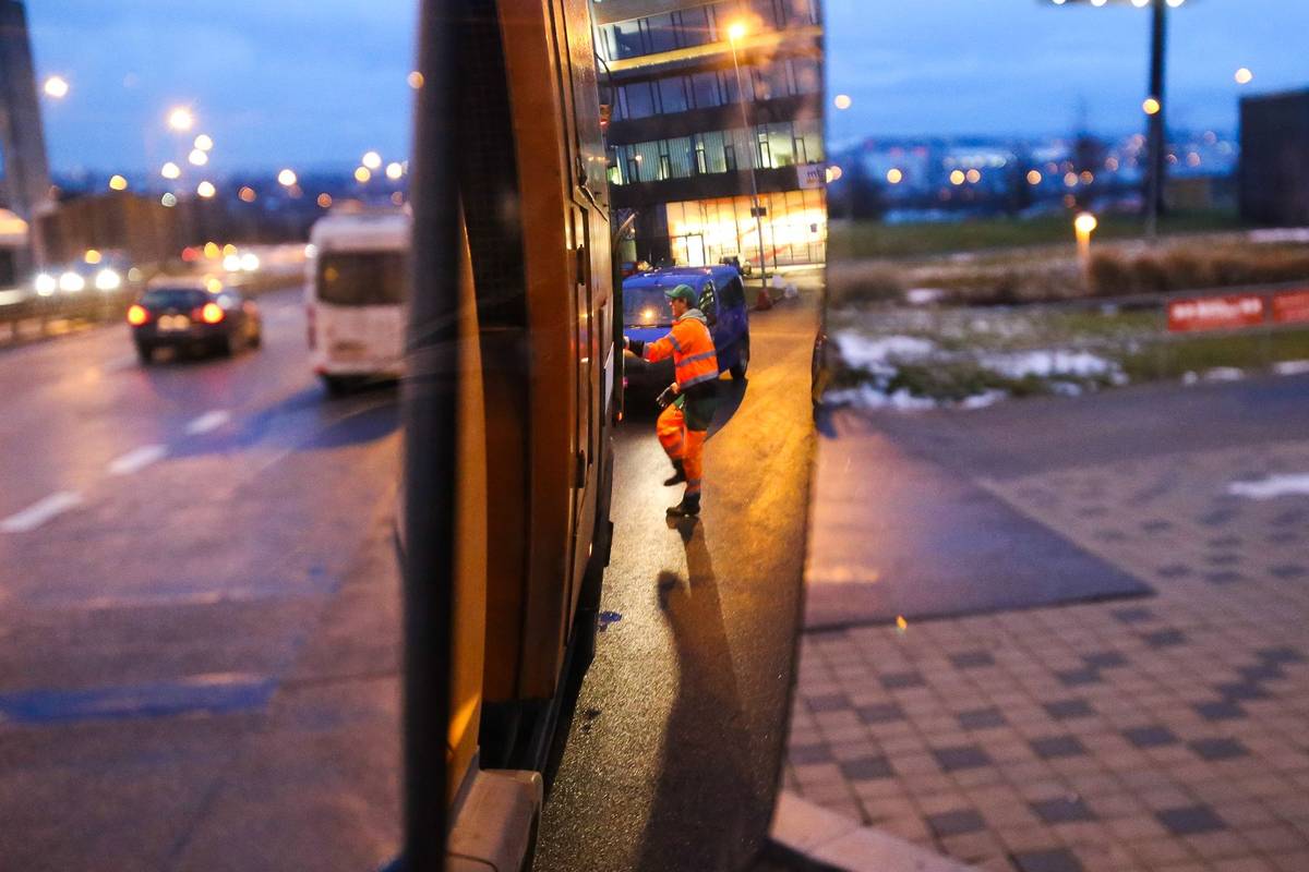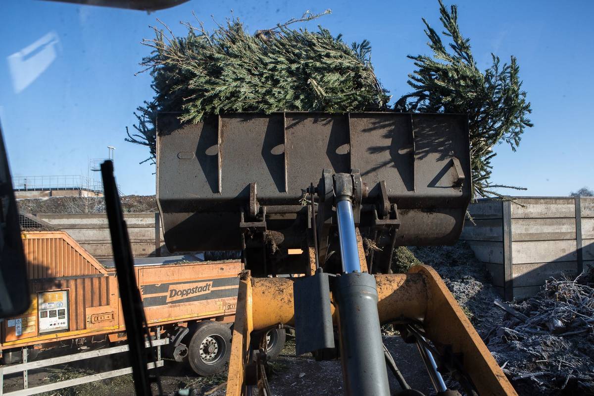 Popelářský vůz tady stromky nejdříve vysype, čemuž se občas musí pomoci, protože stromky mohou přimrznout a zaseknout se.