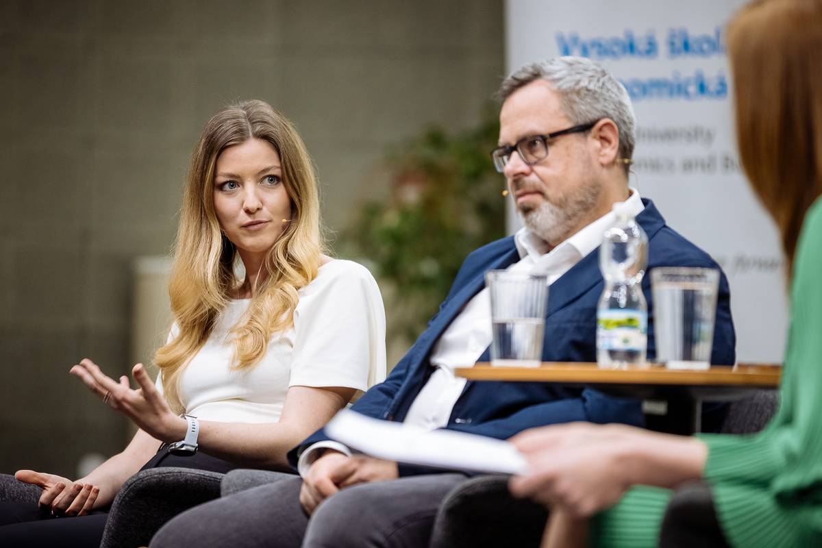Investiční podcast Markéty Bidrmanové poprvé natáčel na Vysoké škole ekonomické. Studenti a příznivci Ve vatě naplnili Vencovského aulu.