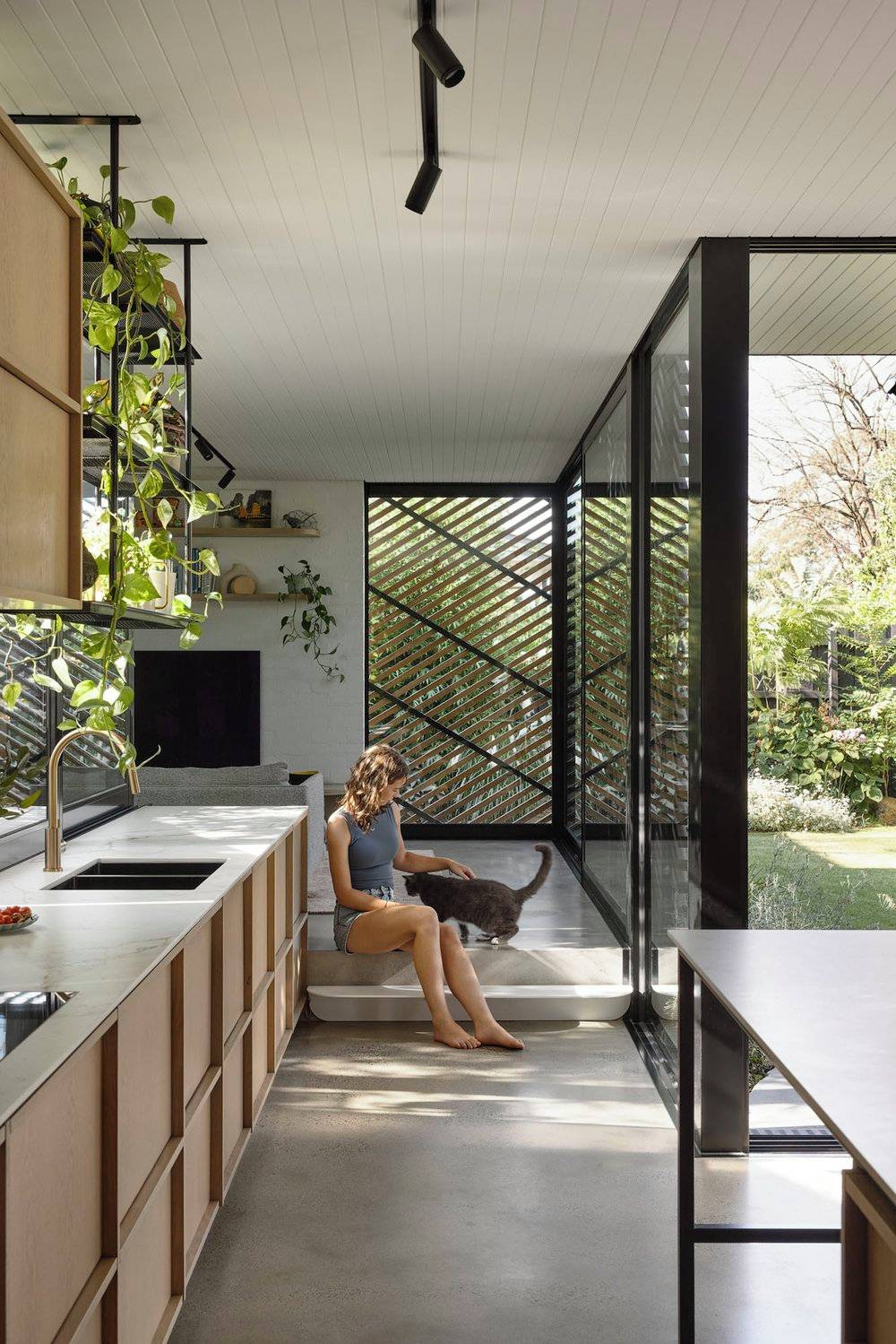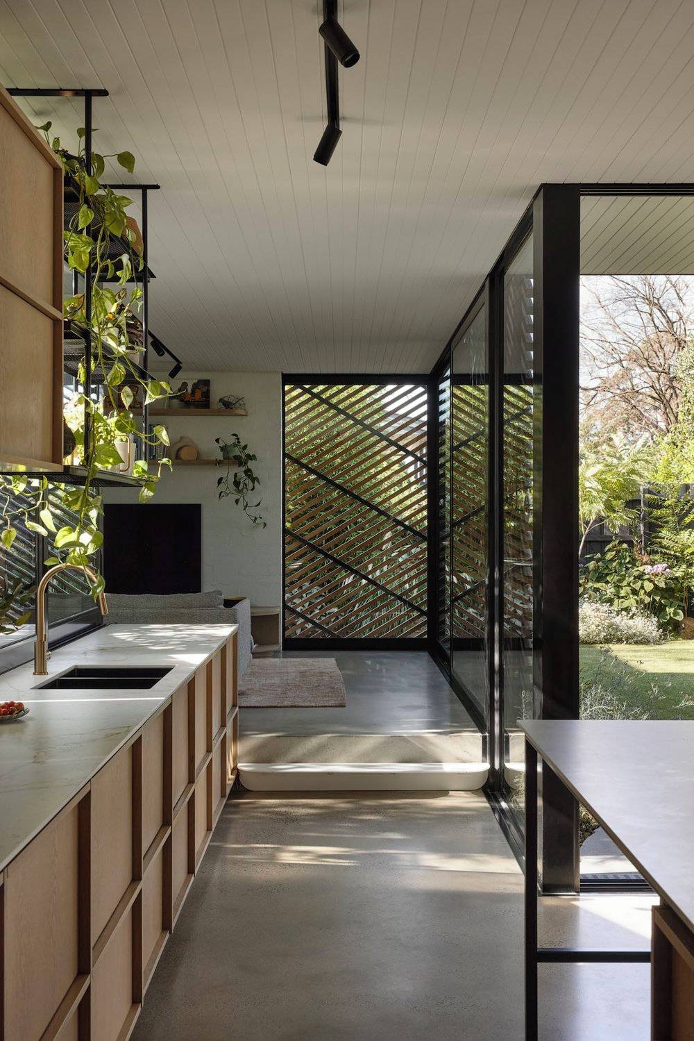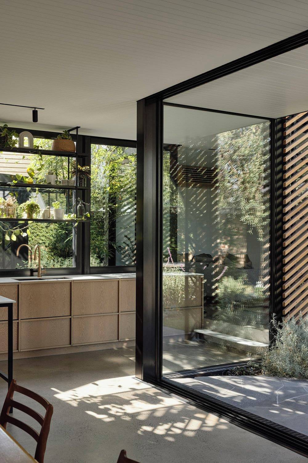 Roh tzv. kapesní zahrady vnáší živou přírodu přímo do středu obytného prostoru.