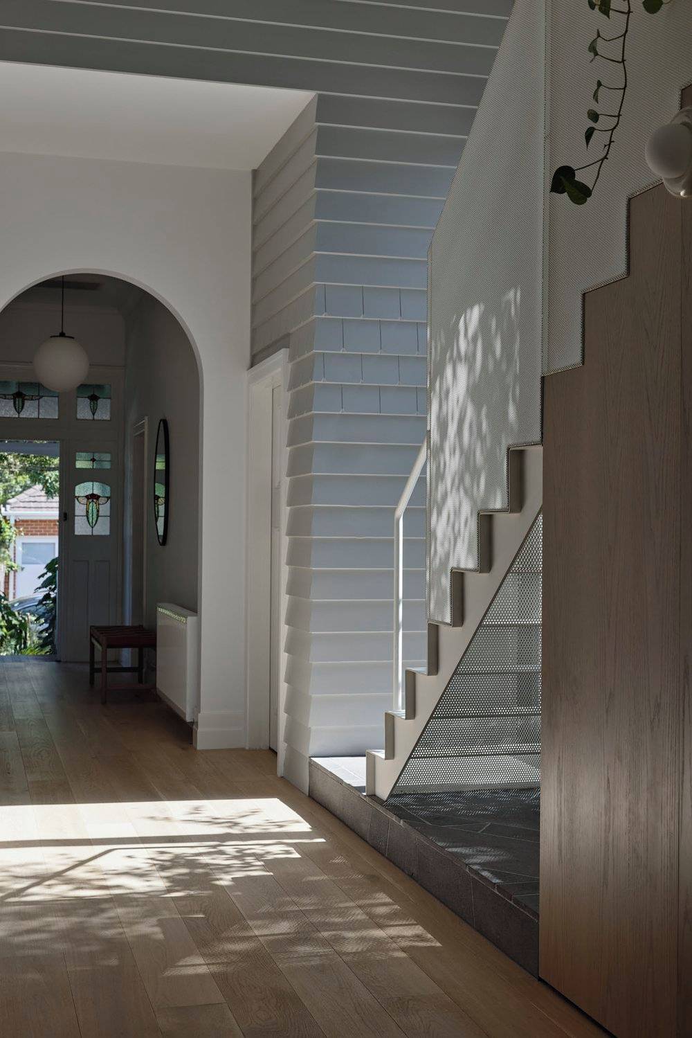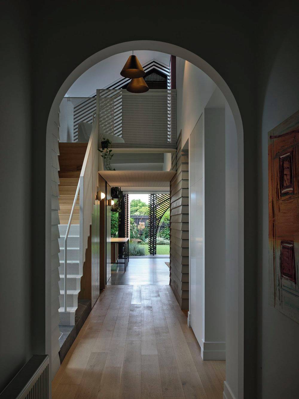 Páteřní chodba vedoucí od vstupních dveří až na konec domu do zahrady je rys, který si majitelé přáli zachovat.
