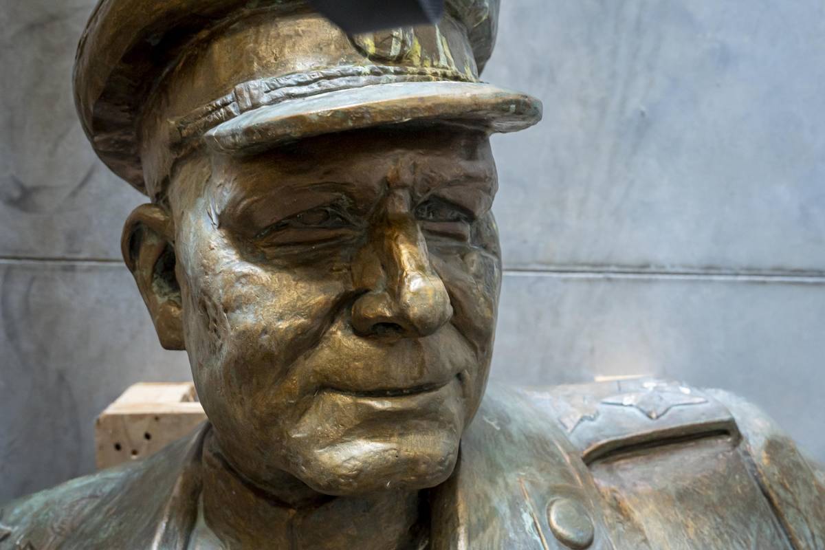 Socha maršála Koněva v depozitáři v Měšicích za Prahou