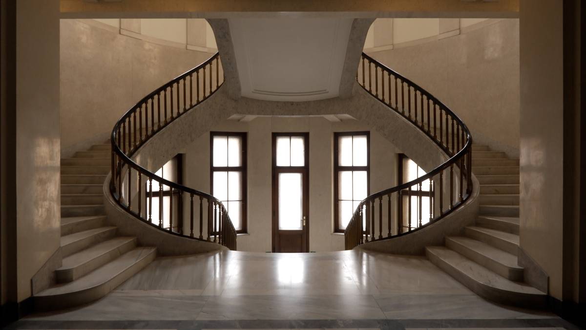 Schody, kudy doprovází ministr návštěvy na nádvoří