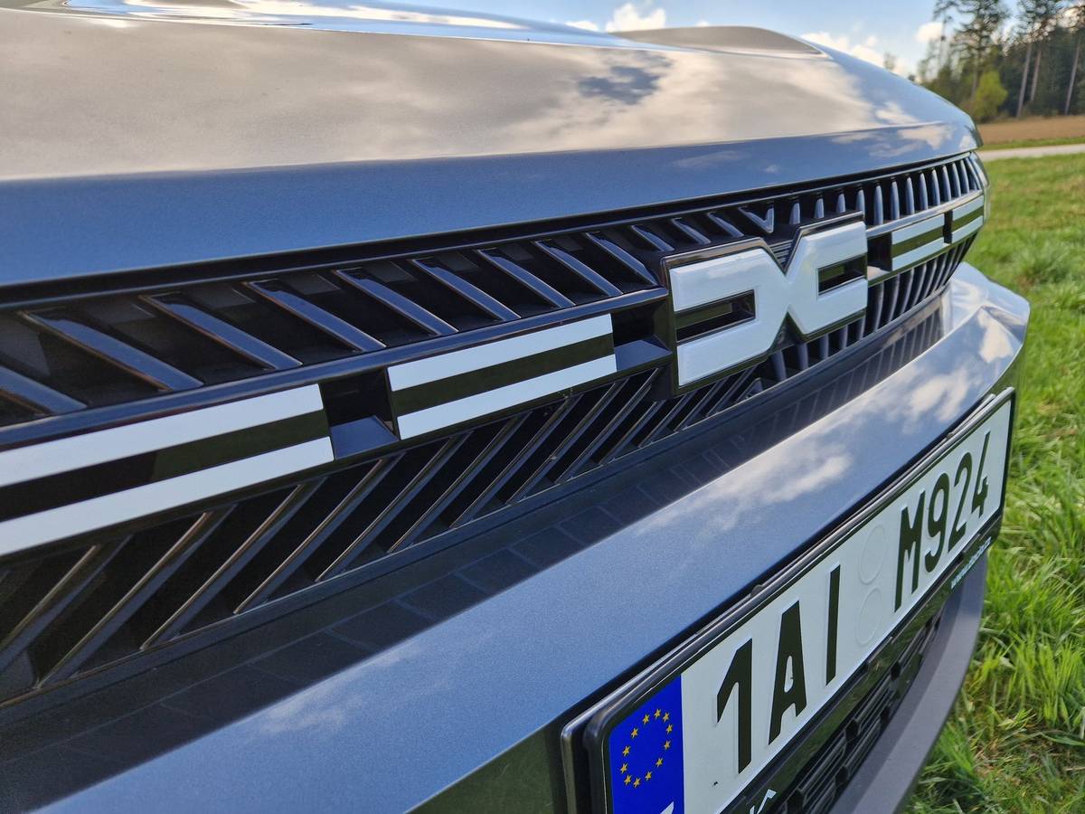 Bílé segmenty v čelní masce jsou pro Dacie typické.