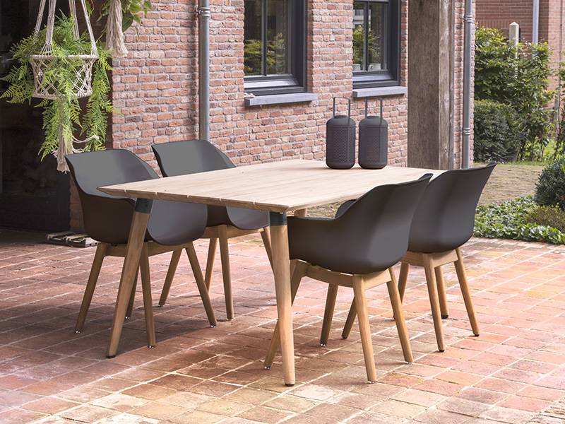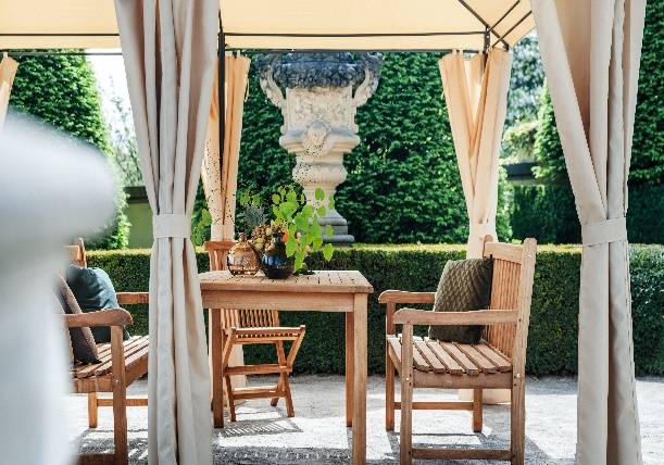 Dřevěný nábytek je ozdobou každé terasy. Ve světlém provedení se velmi hezky vyjímá pod pergolou v barvě písku.