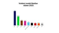 Sněmovní volby by letos v dubnu vyhrálo hnutí ANO stále s velkým náskokem před koalicí Spolu (ODS, KDU-ČSL, TOP 09) na druhém místě. Spolu oproti březnu mírně snížilo náskok ANO. To by nyní získalo 33 procent hlasů a Spolu 20,5 procenta. Vyplývá to z aktuálního volebního modelu agentury Median. Hnutí SPD poskočilo od března na třetí příčku. Odsunulo tak na čtvrté místo STAN. Do Sněmovny by se dostali také Motoristé sobě, Piráti a Stačilo!.