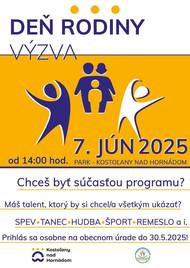 Ak máš talent a chceš ho ukázať všetkým, vystúp na Dni rodiny 2025. Viac info na priloženom plagáte.