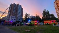 Požár v nejvyšším patře domu v Ostravě. Hasiči zachraňovali pomocí výškové techniky