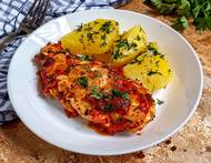 Kuřecí prsa zapečená v troubě s rajčaty a se sýrem: Rychlý oběd z jednoho pekáče