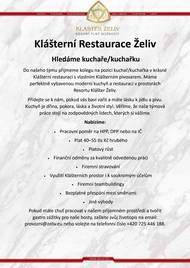Klášterní restaurace v Želivě přijme do svého týmu kuchaře/kuchařku. Více informací na tel. č. 725446188.