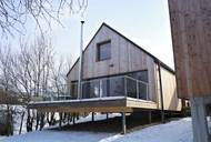 Při toulkách bratislavskou Dúbravkou nás upoutala dřevostavba, která do okolí zářila díky oranžovým roletám na jednom z oken. Dřevěná fasáda, jednoduché čisté linie a sedlová střecha zapadají do svažitého pozemku a přírodního charakteru prostředí.
