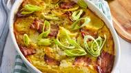 Zapečené brambory s pórkem a slaninou – jednoduchý a chutný oběd do trouby
