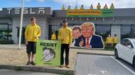 Greenpeace obsadili prodejnu Tesla v Čestlicích. Protestovali proti Trumpovi a Muskovi