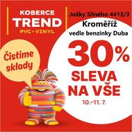 V prodejně KOBERCE TREND Kroměříž (Jožky Silného 4413/3) vedle benzínky Duba, mají mimořádnou slevu 30 % na veškeré zboží!