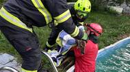 V bazénu se koupal host z lesa. Vyčerpanou srnu zachránili hradečtí hasiči