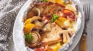 Vepřové kotletky zapečené v alobalu se slaninou, žampiony, bramborem a sýrem
