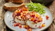 Grilovaný hermelín ve slanině s medovo-vínovou omáčkou z nektarinek a šalotek