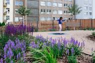 Ze suchého trávníku vznikl park, kde se dá sedět ve stínu i hrát. Navrhl ho ateliér YYYY krajinářské architektky Terezy Rapsové.