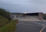 U nákladního vozu který skončil na boku zasahovali hasiči