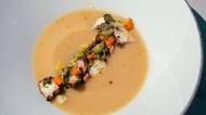 Bramborový krém s chobotnicí, zeleninou a čerstvou majoránkou z restaurace Ginger & Fred