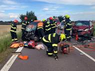 Po střetu dvou aut museli hasiči vyprostit zraněnou řidičku. Ženu transportoval vrtulník do nemocnice. Silnice byla částečně neprůjezdná až do večera