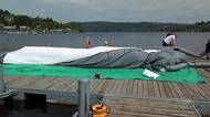 Na hladině Brněnské přehrady pluje nafukovací kino. Promítat se začne hned večer