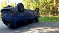 Po nehodě dvou vozidel skončila mezi Dobříší a Hostomicemi dodávka na střeše