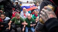 Nejsme očkovací otroci. Protestující v Bratislavě se bijí navzájem, zranili bratra Kotleby