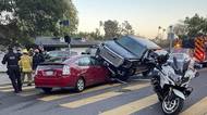 Akční hrdina Arnold Schwarzenegger (74) měl bouračku. Se svým černým SUV GMC Yukon to napálil do červené Toyoty Prius jen kilometr od svého domu v Brentwoodu.