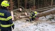Silnice je stále neprůjezdná kvůli stromům. Odklízí je dvacet mnichů