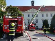 Hasiči proti plamenům na zámku v Holešově: Trénink, který může zachránit historii