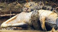 Jedna z největších kočkovitých šelem se nebojí ani kajmana. Čelisti jaguára si poradí i s kořistí o váze tří metráků.