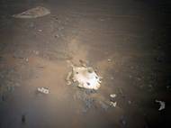 To, co vypadá jako snímek ze sci-fi filmu, zachytila Ingenuity NASA a jedná se o fotografii přistávacího zařízení roveru Perseverance na povrchu Marsu. Vrtulník americké vesmírné agentury Ingenuity, který se s roverem skutečně svezl, pořídil barevné snímky přistávacího zařízení, které zbylo po jeho příletu v únoru 2021