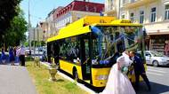 Svatebně nazdobený trolejbus vezl novomanžele Mariánskými Lázněmi