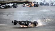 Velká cena Velké Británie na ikonickém okruhu Silverstone hned na úvod přinesla děsivé chvíle hrůzy. Hned po odstartování se v hromadné havárii srazili George Russel, Esteban Ocon, Yuki Cunoda a Čou Kuan-jü. Vůz čínského jezdce se roztočil, a podvozkem vzhůru doklouzal až k bariérám, které přeletěl a skončil zaklíněný v monopostu. Nováčka formule 1 preventivně převezla sanitka do nemocnice. Závod byl pozastaven téměř na jednu hodinu.