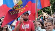 FOTO: Ruské vlajky, nadávky na adresu vlády i Ukrajinců. Milovníci Putina demonstrovali v Praze